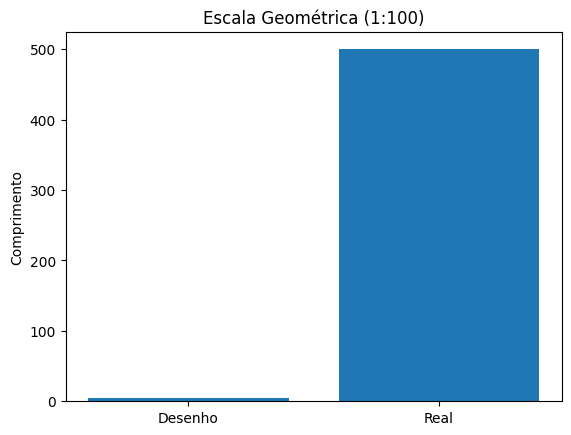 # Exemplo 1: Escala geométrica (mapa ou desenho técnico)