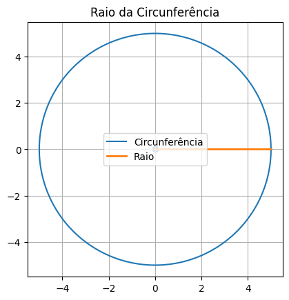 | plt.title(“Raio da Circunferência”) | Define o título do gráfico. |