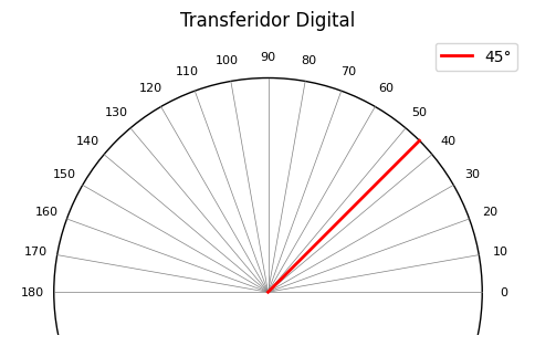 | desenhar_transferidor(45) | Chama a função para desenhar o transferidor com o ângulo de 45°. |